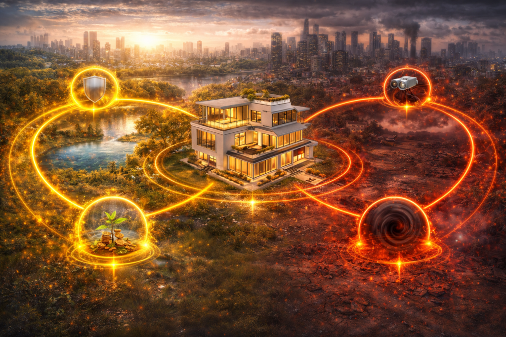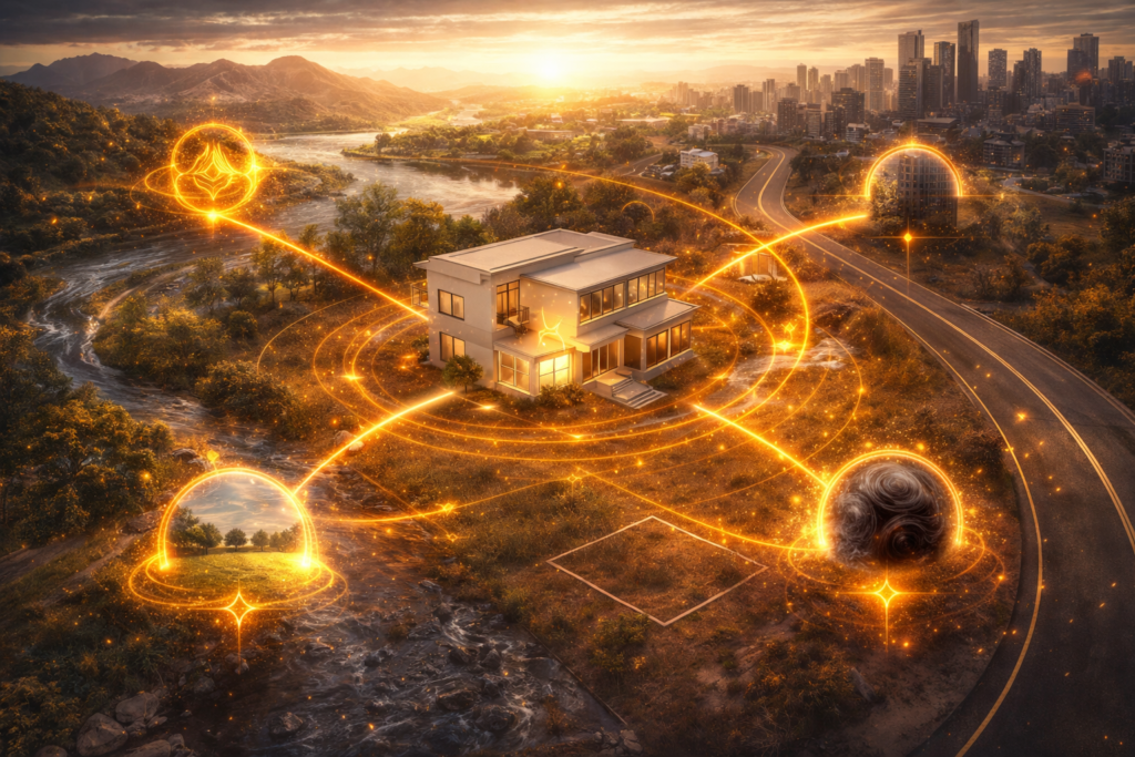 Esoteric Vastu refers to the subtle and external influences that act upon a property from outside its immediate structure. These surrounding conditions affect how energy enters, circulates, and settles within the built space.